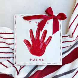 One handprint or footprint on a plaque shape of your choice. Features a front inscription, a ribbon hanger, and an optional short inscription on the back.